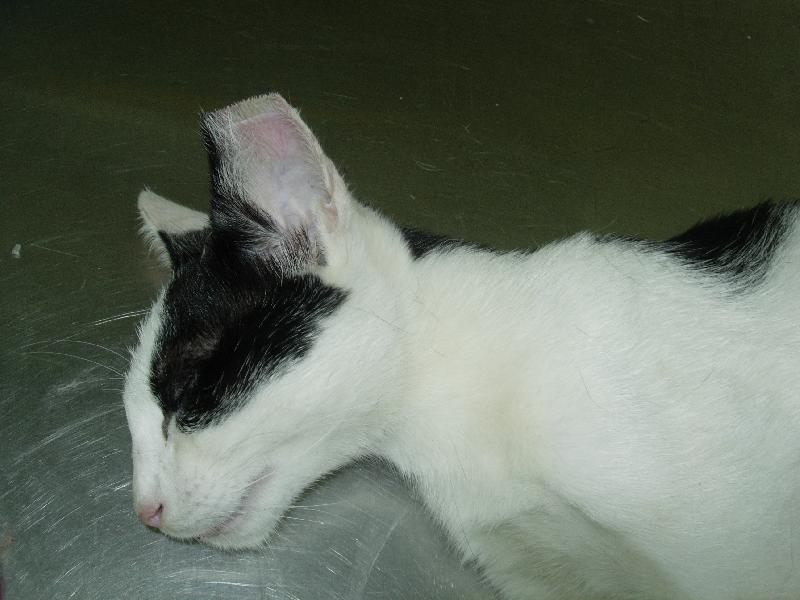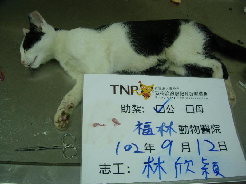 更多災多難的是,送到中山的隔天,醫院來電說,小黑白竟由雙門誘捕籠的後門脫逃!不知去向....!(暈) 不過好在中山動物醫院除了對外大門,沒有其它通道讓牠可開溜,數日後來電說在醫院的儲藏室找到牠,也跟醫院說明因為需要申請補助,所以必須送至協會合作的其它醫院手術