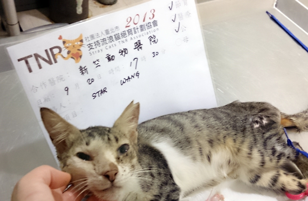 誘捕者暱稱: Star Wang 性別: 公 花色: 白底虎斑 誘捕地點: 南寮收容所 結紮醫院: 新竺動物醫院 結紮費用: 800 助紮者: 已付款:王小卷x1, Ting-Ya Yangx1, Anjeli Hsiehx1 額外醫療費用申請: 特別說明與誘捕心情: 8月29日自南寮收容所C區接出的貓咪之一。