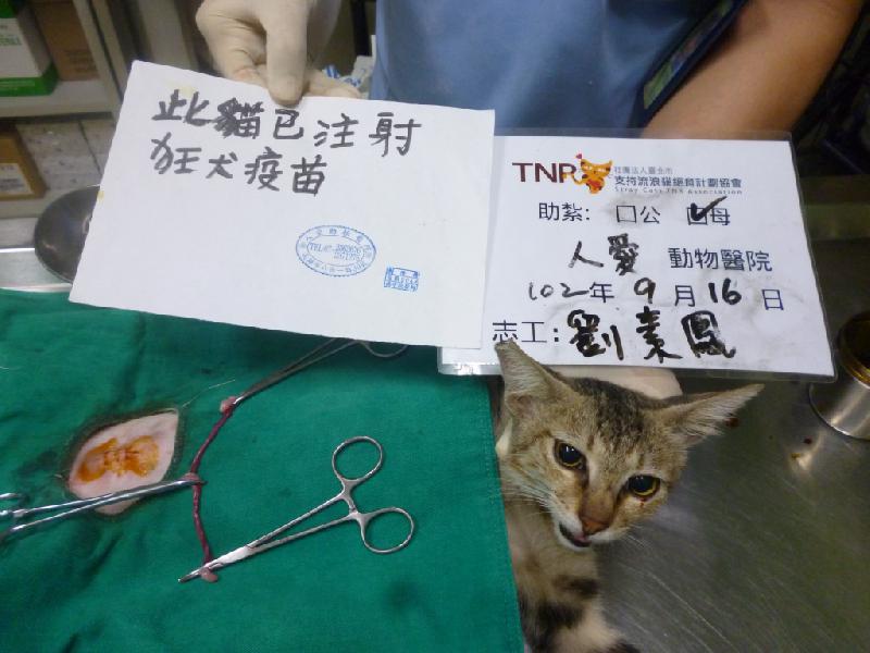 這是在民族社區捕獲的母貓, 到醫院進行結紮手術並施打狂犬疫苗, 感謝大家的善心助紮. 0916-2
