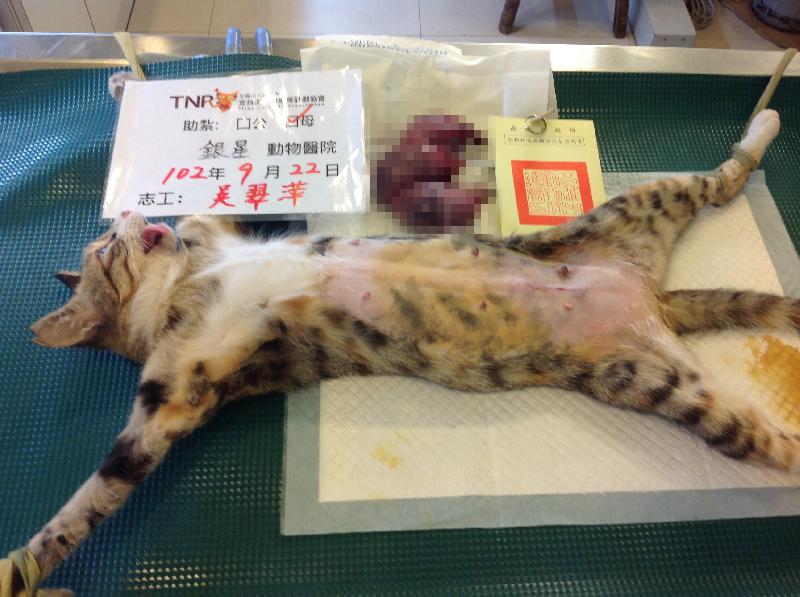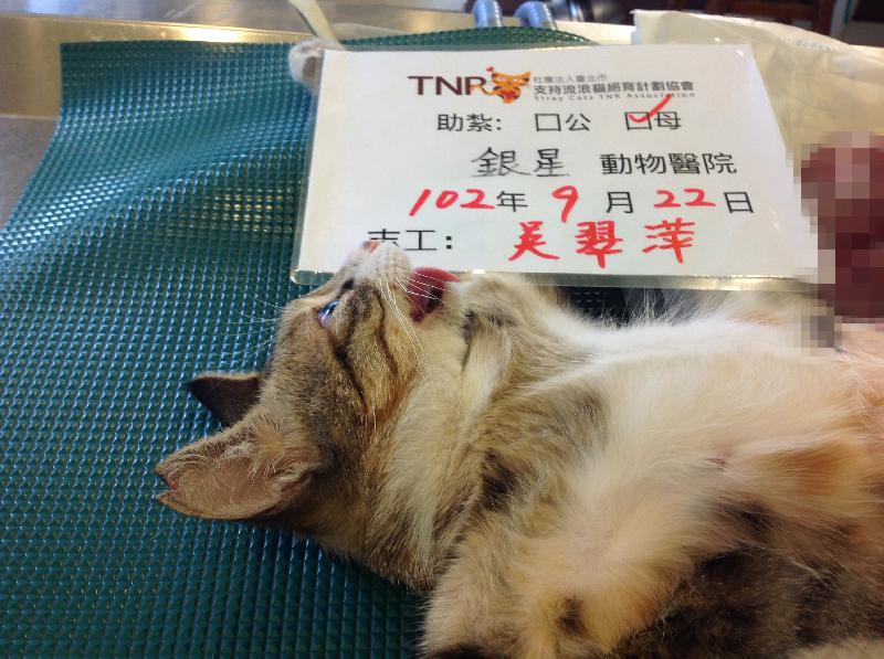 今天帶去的母貓也結紥囉~~!今天掃到颱風尾,還繞了一大圈帶她去,辛苦貓咪了,感覺她在攜帶籠裡一直很緊張,這次醫生已經知道要幫貓咪帶狂犬疫苗囉!!謝謝醫生跟協會,我會再持續捕捉喔!
