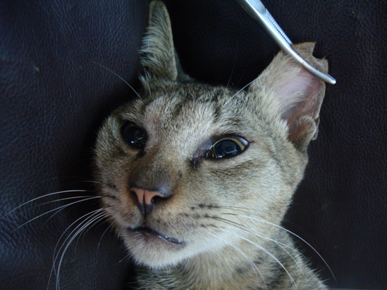 這隻浪貓,跳蚤很多,手術時跳蚤鑽來鑽去,對醫生有些不好意思,我自費幫牠除內外蚤。想必我載牠們的車子裏也多了跳蚤。