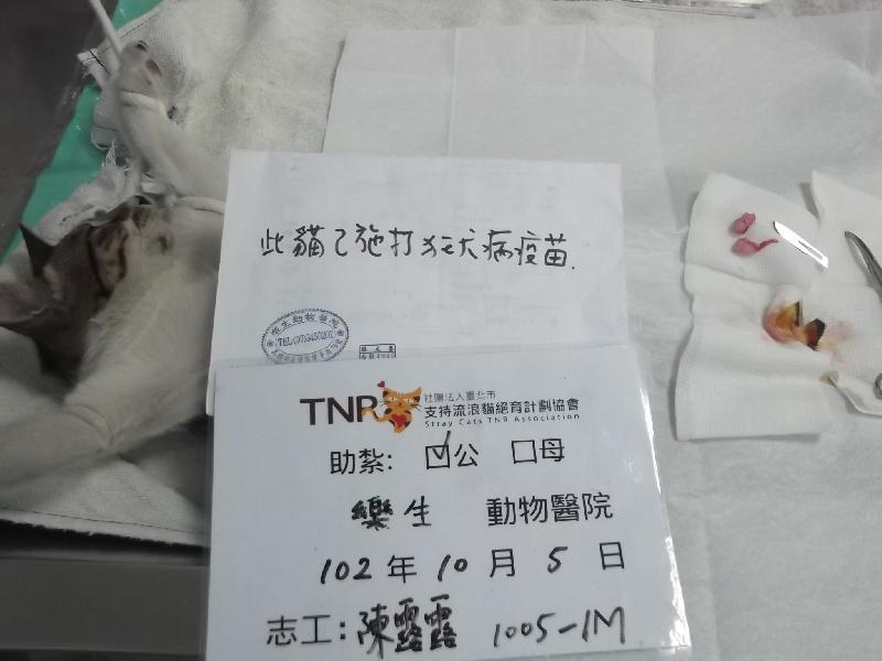 結紮醫院: 樂生動物醫院 結紮費用: 700