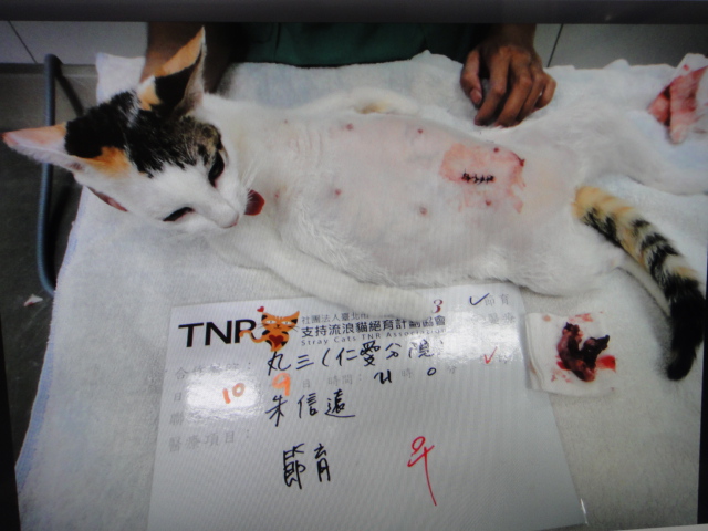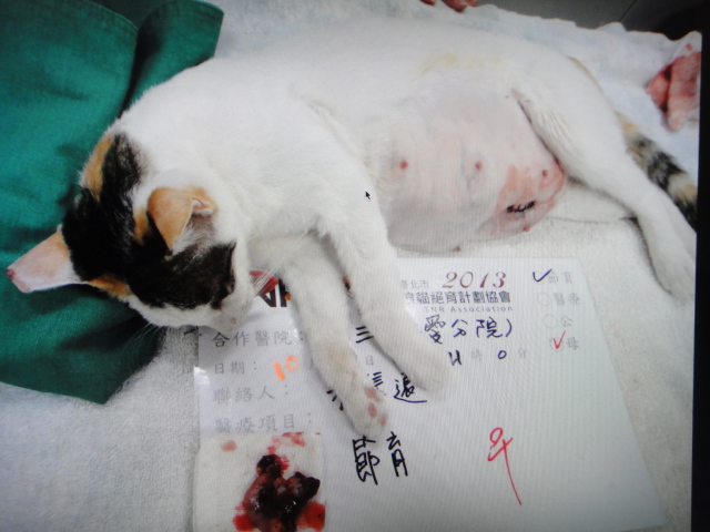 七月五日抓到老妖精很開心,隔天醫生告訴我牠又懷孕了,所以帶回來待產,八月十五日牠生產但難產,還好救回了三隻小貓,現在牠終於結紮了,再也不用再生了,開心.