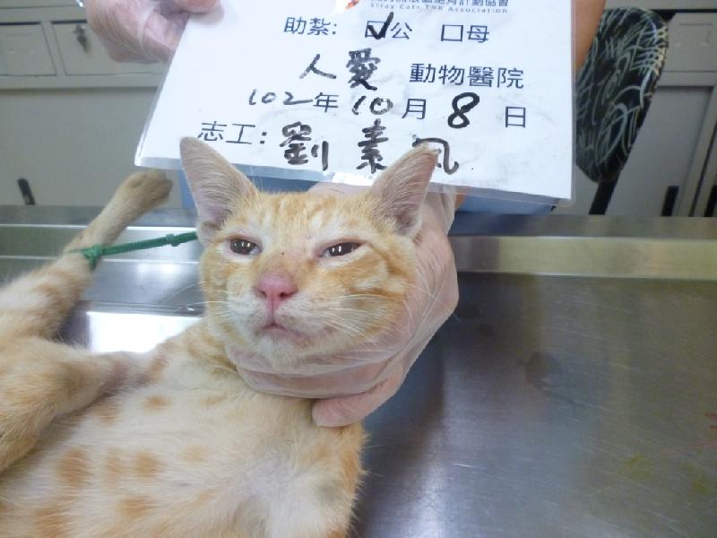 這是在熱河街捕獲的橘色公貓!因為腹部有些腫脹!院長懷疑是傳染性腹膜炎~目前結紮完先暫時觀察看他的狀況如何再原放,希望貓咪沒事. 1008-3
