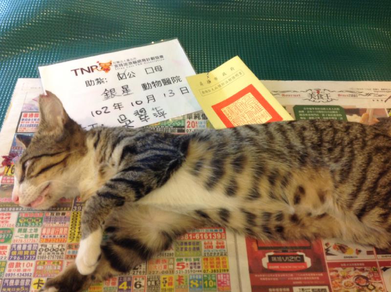 誘捕了第三隻貓結紥,平時都要上班,所以都要等假日才可以捉,因為沒有汽車,所以一次都只能捉一隻,雖然速度很慢,不過我會慢慢落實這裡全面TNR^^