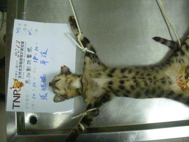 誘捕者暱稱: 張媽媽 性別: 公 花色: 虎斑 誘捕地點: 平溪十分 結紮醫院: 恩加動物醫院 結紮費用: 800 助紮者: 已付款:Daisy Kaimin Tux1, Daisy Kaimin Tux1 額外醫療費用申請: 特別說明與誘捕心情: 到十分找尋受傷的母狗,意外發現當地有許多貓咪沒有結紮,雖然住戶會將吃剩的食物分給貓咪吃,但沒有固定在做餵食,詢問住戶,發現這裡的貓咪命運就是不斷生育,幼貓營養來源不夠會慢慢逝去,母貓有可能因為長期生育身體狀況不佳死亡率很高,但因為該地區狀況不是很好,跟居民協調希望已TNR的方式控制貓咪的數量,讓這些貓有更好的生活品質,透過結紮、除蚤讓貓咪身體更健康,免於生育之苦,也能更長壽,因為貓隻數量實在太多,還請各位幫忙這些貓咪。