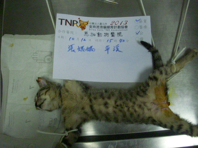 誘捕者暱稱: 張媽媽 性別: 公 花色: 虎斑 誘捕地點: 平溪十分 結紮醫院: 恩加動物醫院 結紮費用: 800 助紮者: 已付款:小麥x3 額外醫療費用申請: 特別說明與誘捕心情: 到十分找尋受傷的母狗,意外發現當地有許多貓咪沒有結紮,雖然住戶會將吃剩的食物分給貓咪吃,但沒有固定在做餵食,詢問住戶,發現這裡的貓咪命運就是不斷生育,幼貓營養來源不夠會慢慢逝去,母貓有可能因為長期生育身體狀況不佳死亡率很高,但因為該地區狀況不是很好,跟居民協調希望已TNR的方式控制貓咪的數量,讓這些貓有更好的生活品質,透過結紮、除蚤讓貓咪身體更健康,免於生育之苦,也能更長壽,因為貓隻數量實在太多,還請各位幫忙這些貓咪。