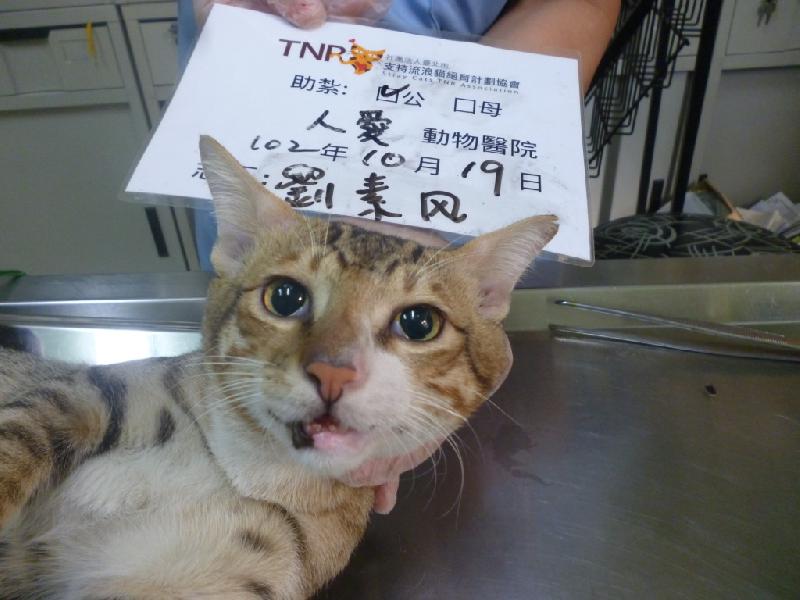 花色: 白底虎斑 誘捕地點: 熱河街附近