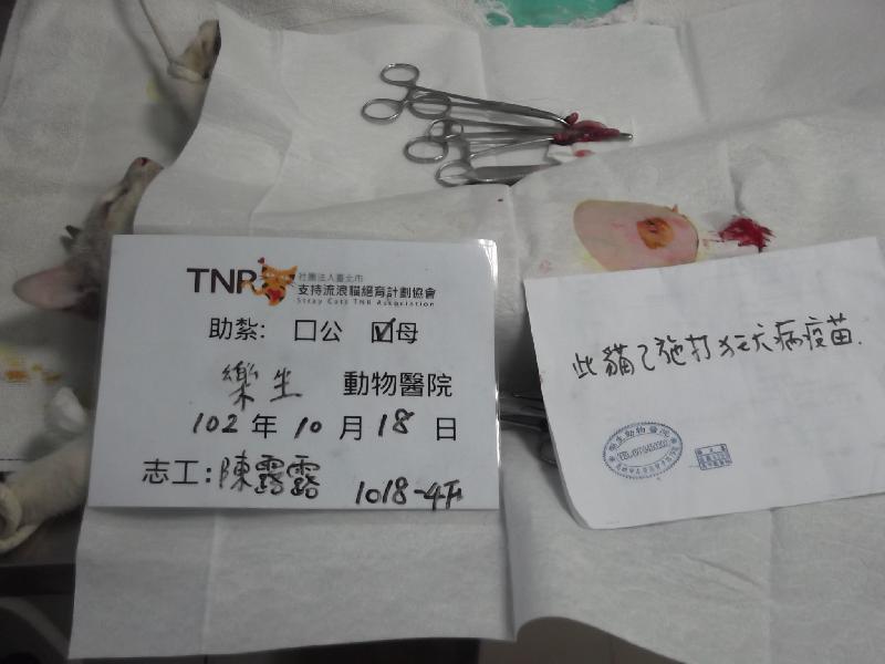 結紮醫院: 樂生動物醫院 結紮費用: 1200