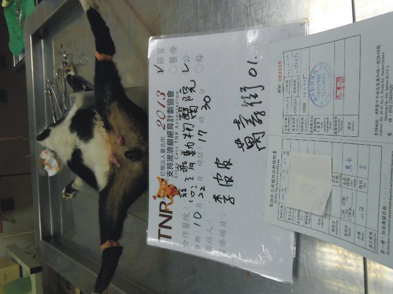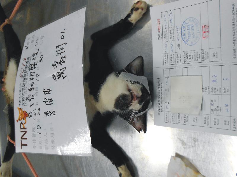 誘捕者暱稱: 李皮皮 性別: 公 花色: 黑白 誘捕地點: 萬壽街 結紮醫院: 慈濟動物醫院 結紮費用: 800 助紮者: 已付款:pei-yu chenx1, 吳天天x2 額外醫療費用申請: 特別說明與誘捕心情: 大里區塗城萬壽街