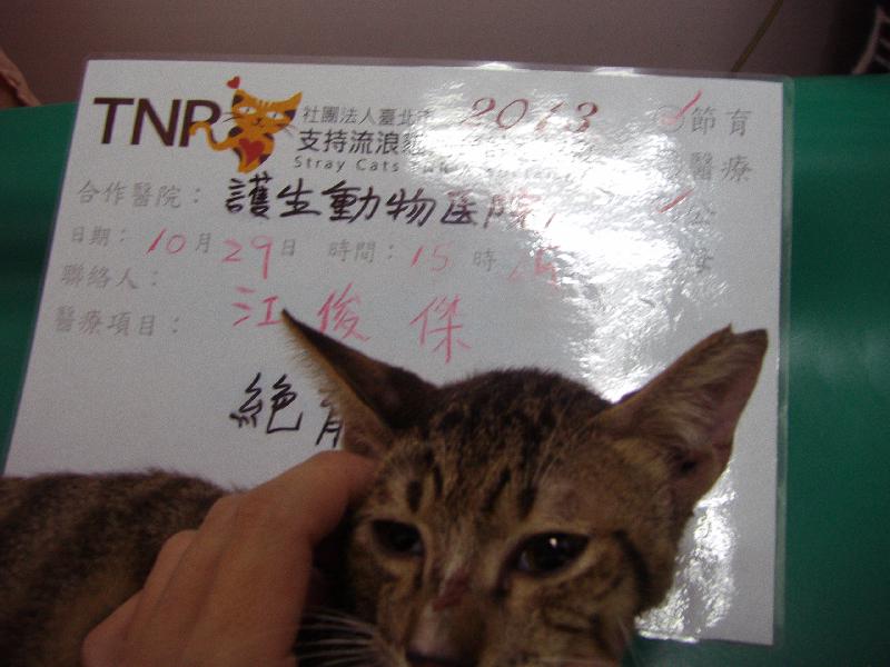 花色: 虎斑 誘捕地點: 新莊收容所