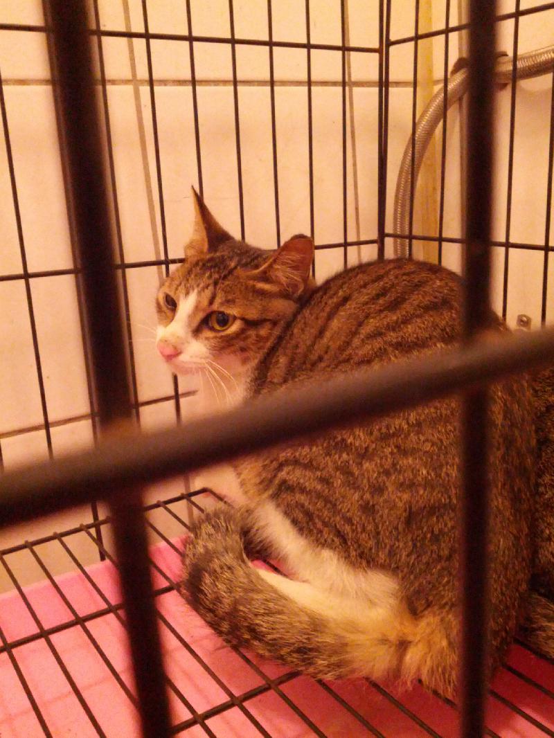 花色: 白底虎斑 誘捕地點: 五股收容所