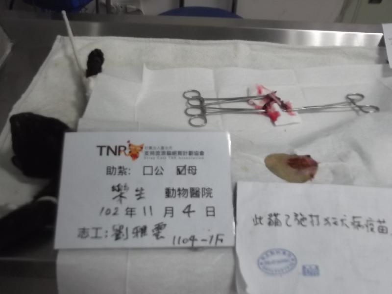結紮醫院: 樂生動物醫院 結紮費用: 1200
