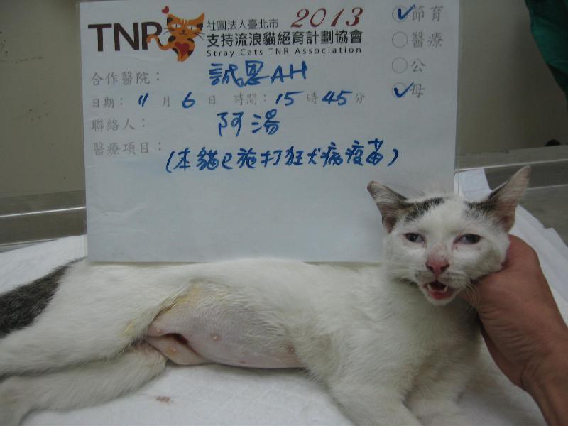 花色: 白底,頭尾虎斑 誘捕地點: 新店裕合街