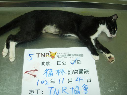花色: 黑白貓 誘捕地點: 中和收容所