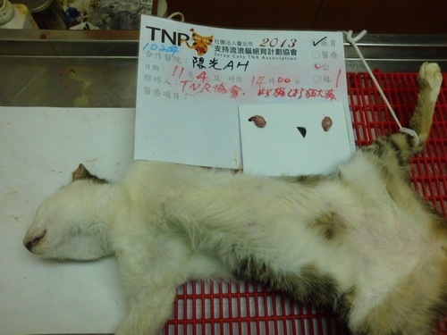 花色: 白底虎斑 誘捕地點: 中和收容所