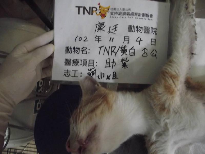 誘捕者暱稱: 嘉嘉 性別: 公 花色: 橘白 誘捕地點: 萬華區錦德里 結紮醫院: 康廷動物醫院 結紮費用: 800 助紮者: 已付款:小凱x1, 櫻桃妹x1, Wanhua Chanx1 額外醫療費用申請: 特別說明與誘捕心情: 這隻橘白公貓