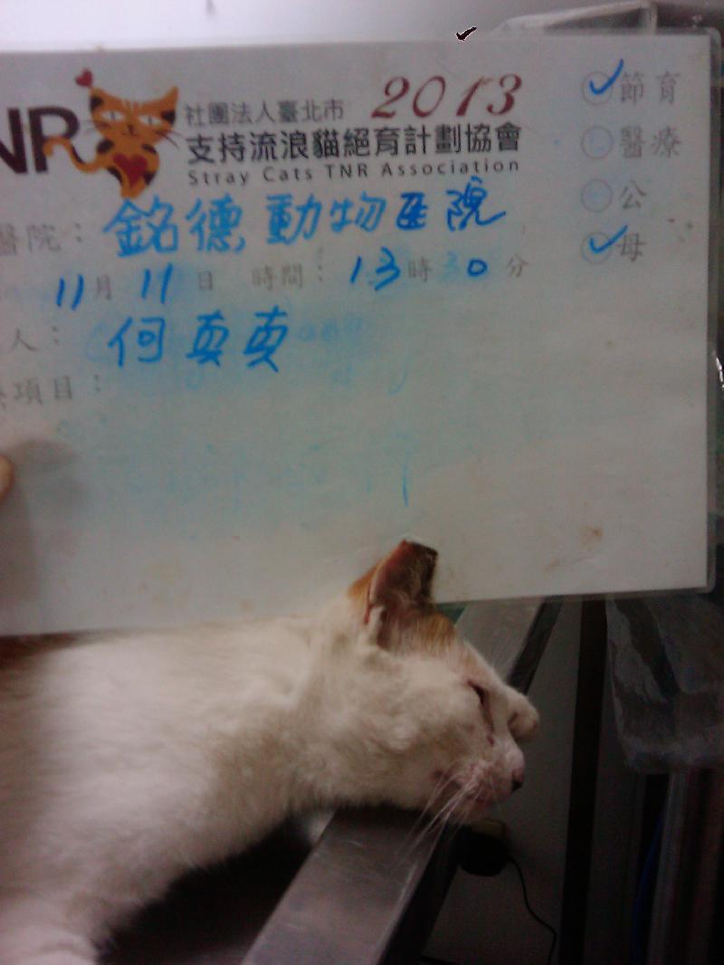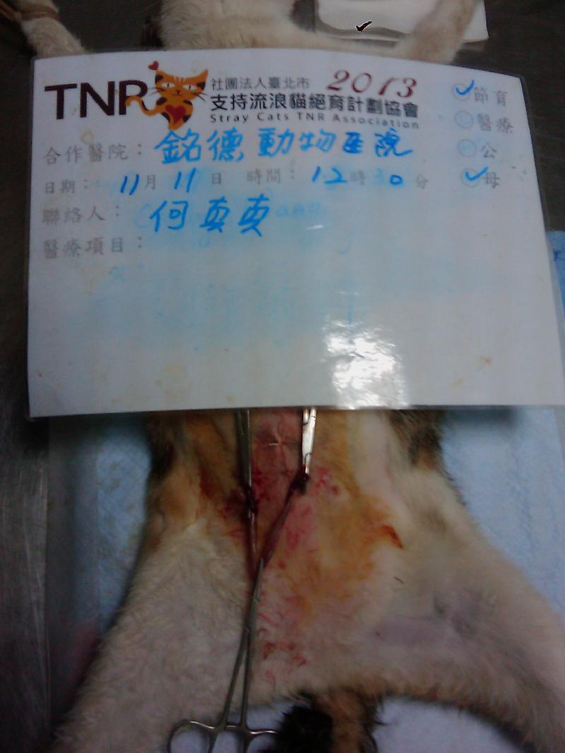 結紮醫院: 銘德動物醫院 結紮費用: 1500