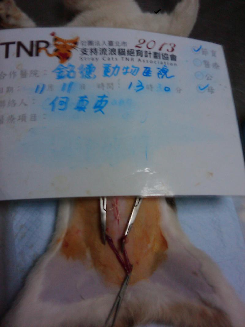 結紮醫院: 銘德動物醫院 結紮費用: 1500