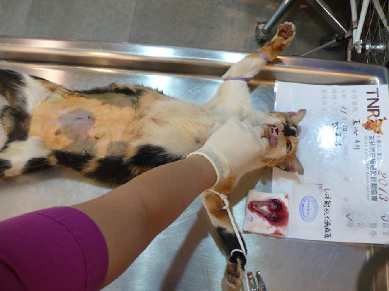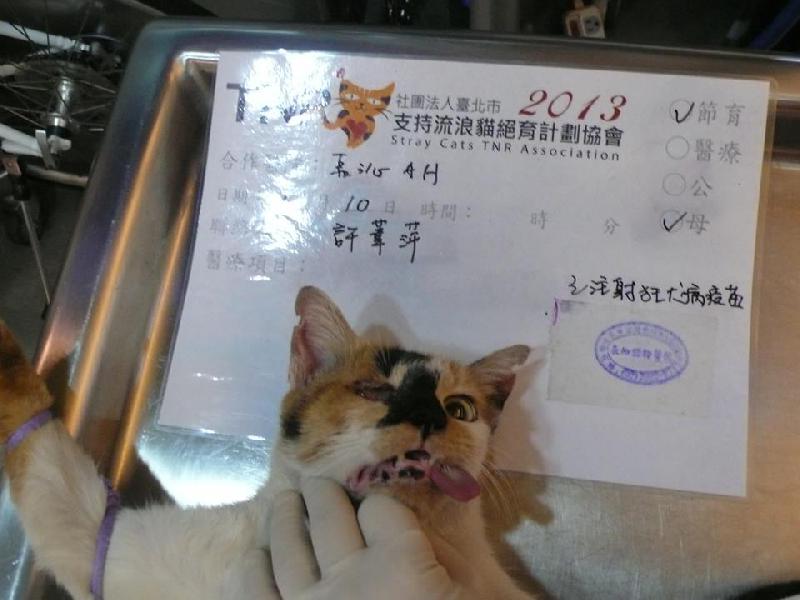 三花媽媽在我開始照顧他開始就是一個盡責的媽媽,努力拉拔三個漂亮的小孩長大,每個都白白胖胖的,現在小貓二個多月了,比較不黏媽媽了,趕緊帶來節紮,以後只要保護自己和小孩,不用再因發情所苦,受生育之痛了,感謝大家。(p.s三花媽媽右邊眼球整個不見,原因已不可考,我開始餵養時傷口已全癒合,後續會持續觀察,謝謝。)