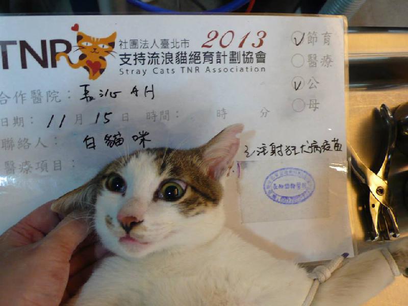 花色: 白底虎斑 誘捕地點: 基隆市