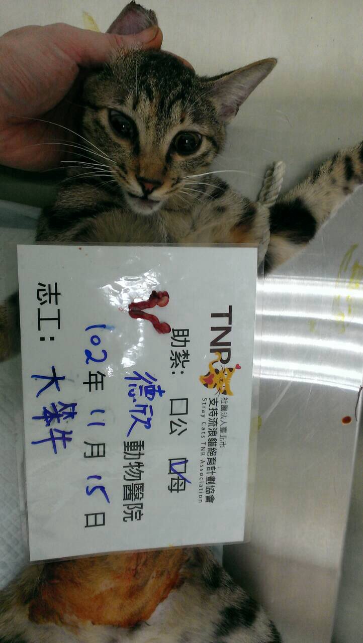 花色: 虎斑 誘捕地點: 三重中正堂停車場