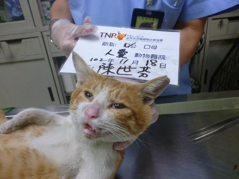 這隻橘白是在高雄中正高工旁的小公園的浪貓,新出現約2∼3個月,貓咪很乖叫牠小乖乖,用誘捕籠抓的時候,連肉都還沒撒完,牠就走進去了,史上最快抓到的喵,30秒成功。當地有好心愛心人餵養,我也會常去關照。