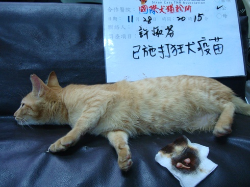 這隻不知打哪來的,新加入豆皮工廠的貓群,看牠長得不小了,趕緊捕去結紮。結紮費用還需善心人士幫忙。