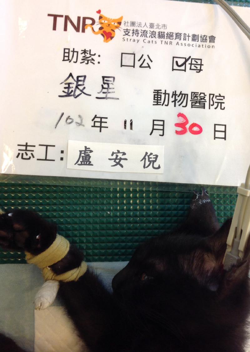 之前與另一位TNR志工在成功路這邊誘捕到的貓咪都是男生,快以為這邊的黑貓都是公的,現在終於誘捕到一隻小母貓.看到結紮的照片有些不捨,希望她趕快復元~