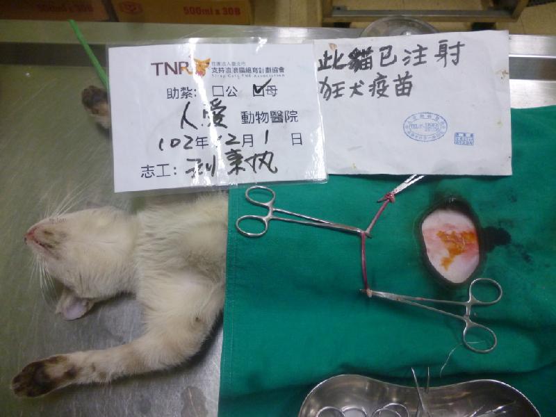結紮醫院: 人愛動物醫院 結紮費用: 1200