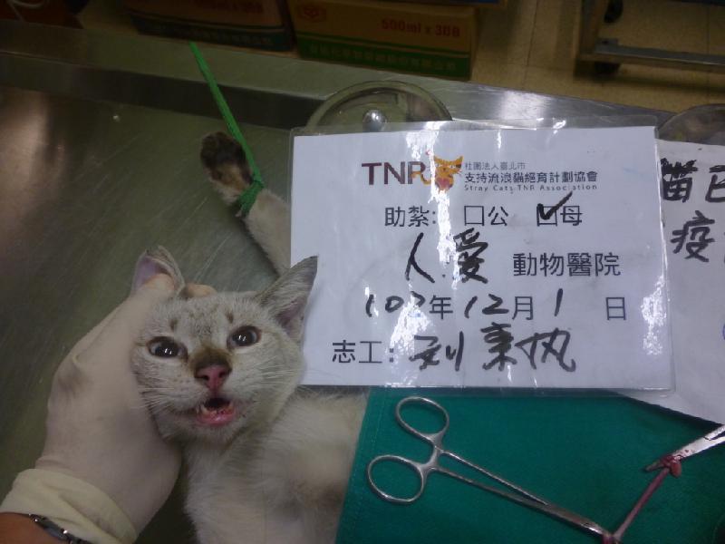 這是在興安街捕獲白底灰背母貓, 趁天冷前趕緊將這母貓結紮, 感謝大家的捐款助紮. 1201-1