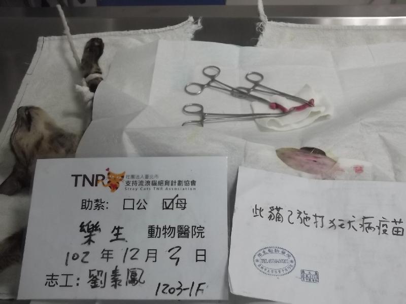 結紮醫院: 樂生動物醫院 結紮費用: 1200