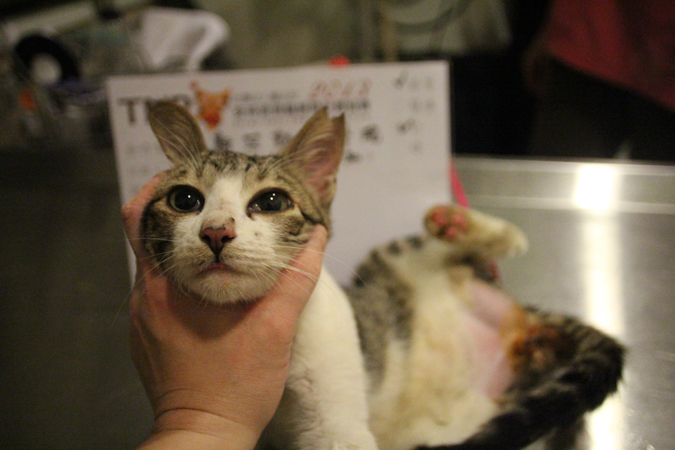 誘捕者暱稱: Star Wang 性別: 公 花色: 白底虎斑 誘捕地點: 竹南留置所 結紮醫院: 新竺動物醫院 結紮費用: 800 助紮者: 已付款:陳怡君x2, Karen Biddlex1 額外醫療費用申請: 特別說明與誘捕心情: 竹南留置所位於焚化爐與清潔隊旁邊,