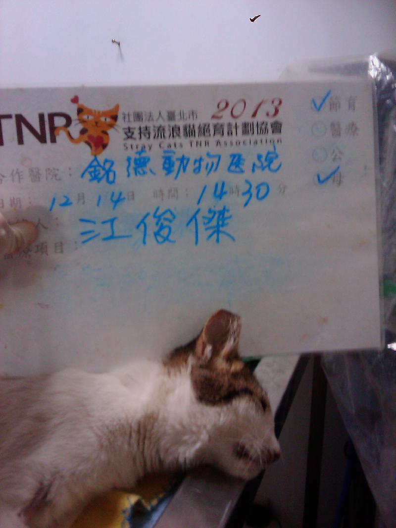 花色: 白底虎斑 誘捕地點: 新莊收容所
