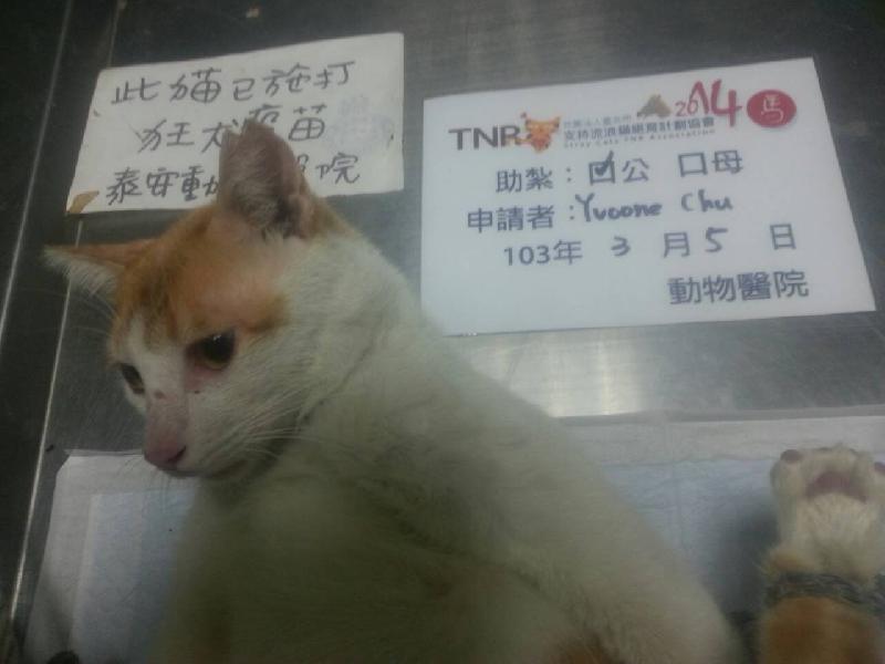 花色: 橘白 誘捕地點: 瑞隆東路巷子