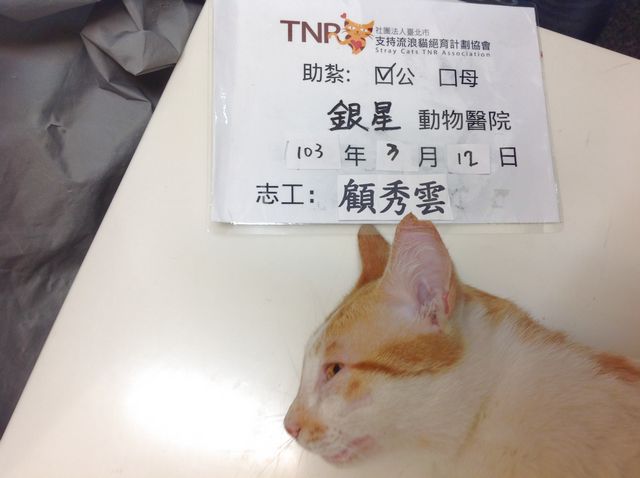 花色: 橘白虎斑 誘捕地點: 喵喵茶後巷