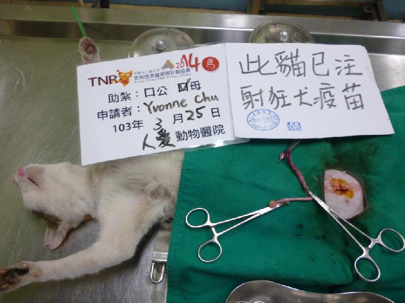 結紮醫院: 人愛動物醫院 結紮費用: 1200