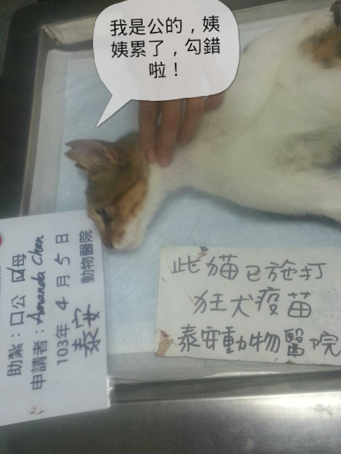 結紮醫院: 泰安動物醫院 結紮費用: 700