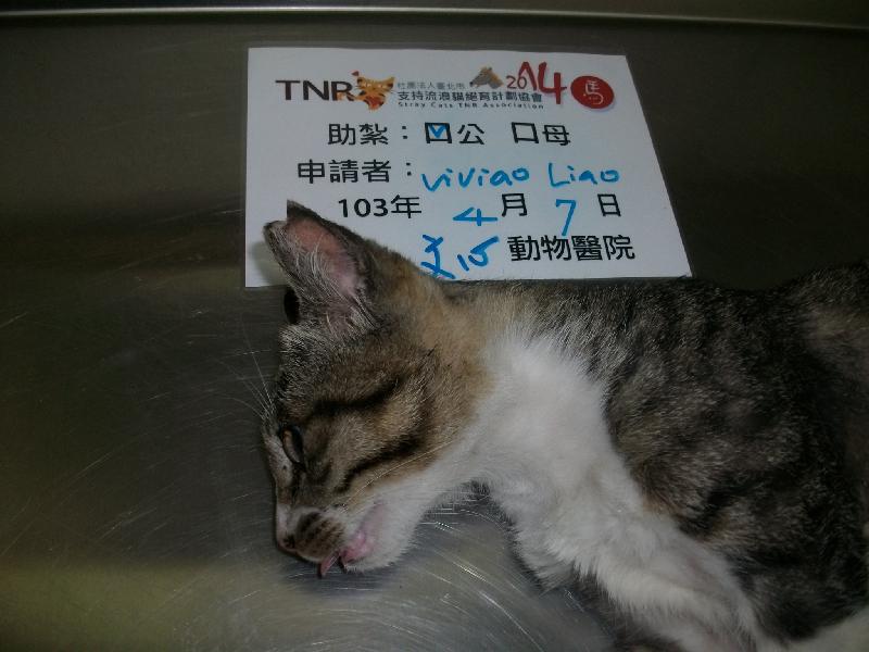 花色: 白底虎斑 誘捕地點: 基隆