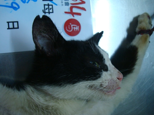 這隻貓捕幾次了,都差一點,這回外面餿水桶被收走,這隻貓餓得覓食,只好走進籠子,以為牠很乖,太大意還是被抓傷了。身上有跳蚤,又吃餿水度日,已自費幫其驅內外蚤。結紮費用還需要善心人士幫忙,謝謝!