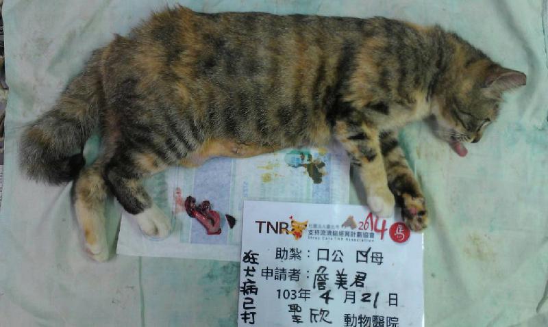 花色: 三色虎斑 誘捕地點: 苗栗縣卓蘭