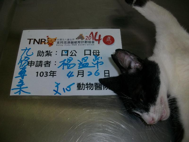 花色: 黑白賓士 誘捕地點: 九份