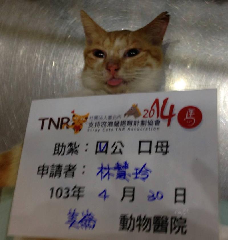 花色: 橘白虎斑 誘捕地點: 康樂三街