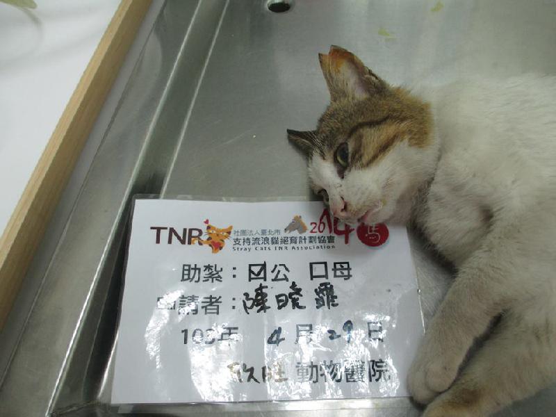 花色: 白底虎斑 誘捕地點: 基隆市