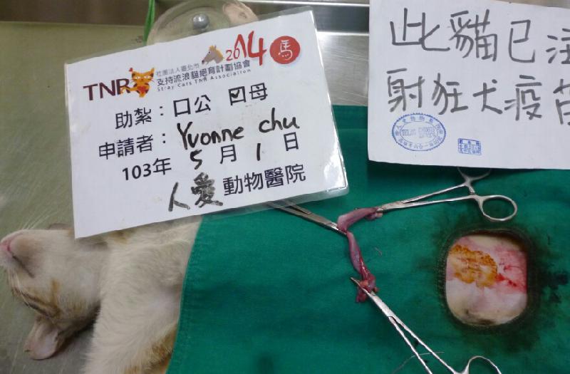 結紮醫院: 人愛動物醫院 結紮費用: 1200