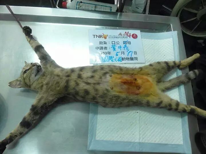 5/17誘捕了三隻母貓,大大減少了貓區的繁殖量,這隻母貓還蠻年輕的,在貓區裡的母貓最近頻繁的發情,如不趕緊的誘捕結紮,繁殖的數量真的是倍增的增加,很驚人,而且生出來的小貓更是可憐,在誘捕的時候還跑出一隻兩個月的小貓,滿臉的流眼淚發炎,也是趕緊的帶回安置治療!