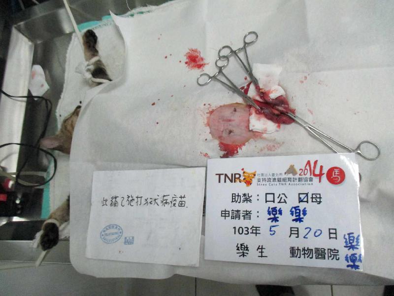 結紮醫院: 樂生動物醫院 結紮費用: 1200