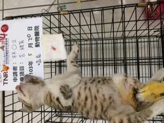 誘捕者暱稱: Fatvivian Wang 性別: 公 花色: 褐色虎斑 誘捕地點: 文心路四段住宅區小巷 結紮醫院: 喵屋貓咪專科醫院 結紮費用: 850 助紮者: 已付款:Wade Chenx1, babybessx2 額外醫療費用申請: 特別說明與誘捕心情: 為控制社區貓口數,皆已實施TNR,但就不知從哪來的小冒險家,兄妹2脫離貓媽媽的保護,開始了他們的城市叢林旅行,在外討食不易,就算上下門牙皆換(至少四個月大),體型還是偏瘦小,應該是餓昏了,志工剛架起誘捕籠,哥哥、妹妹就先後入籠。
