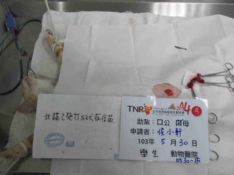 結紮醫院: 樂生動物醫院 結紮費用: 1200