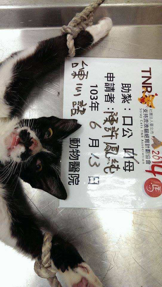 誘捕者暱稱: 陳鳳 性別: 母 花色: 黑白貓 誘捕地點: 台東:我家後面空屋鐵皮屋上 結紮醫院: 心語動物醫院 結紮費用: 1600 助紮者: 已付款:鍾怡君x1, 包子x3, Angel Huangx2 額外醫療費用申請: 特別說明與誘捕心情: 此貓是我家後面鐵皮屋上的小母貓,上星期就已發情,被好幾隻公貓圍繞,我心急如焚,不知如何是好..,因為屋後全是鐵皮屋,小幼幼又都不下來,安置誘捕籠不好放,有的屋主還會譙我,但我不管,不給放我再找別家,就在昨天傳來消息有貓進籠了,原來是她,我實在心喜若狂,因為此貓給她生了,又是生生不息啊..,她的媽媽很不好抓,成貓很狡猾,但!我還是會繼續努力,謝謝協會的幫忙及各位大德的贊助,感謝您~